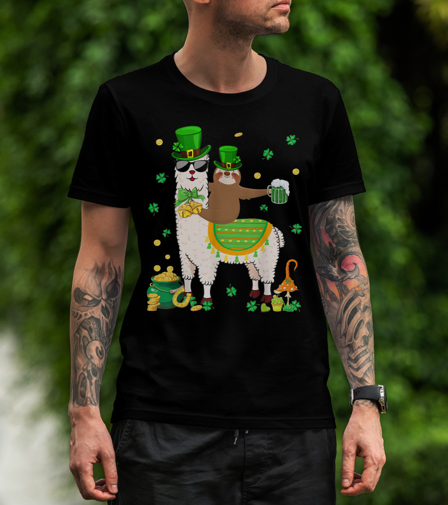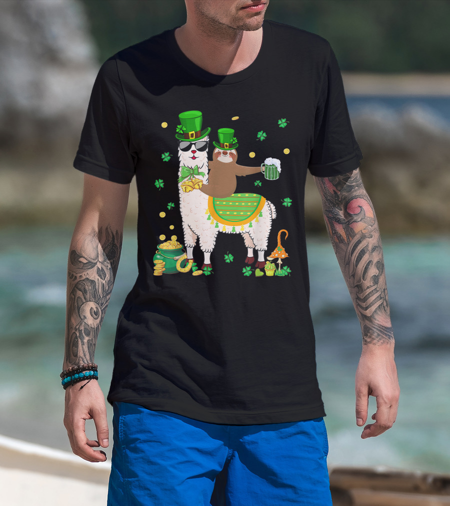 Lucky Shamrock Llama Sloth Lover Happy St Patrick's Day Coins Beer Hat T-Shirt