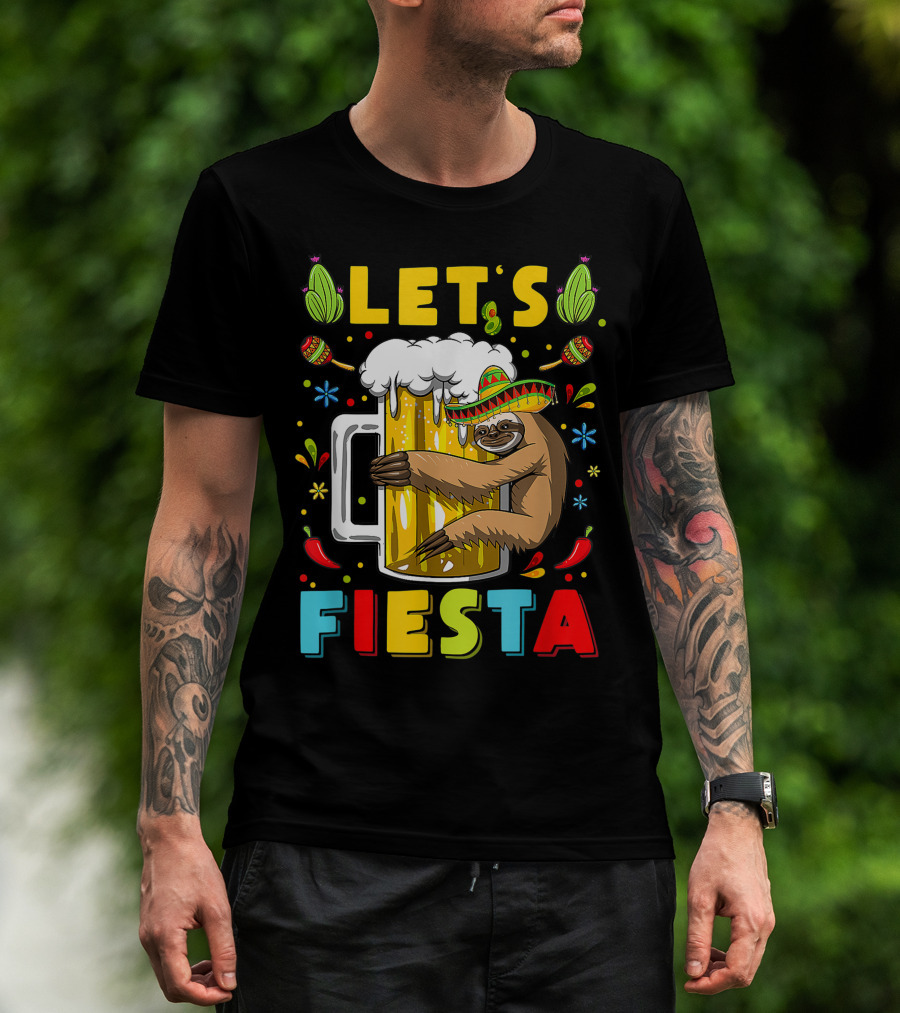 Fiesta Sloth Hugging Beer Mug With Sombrero And Mexican Decor For Cinco De Mayo T-Shirt
