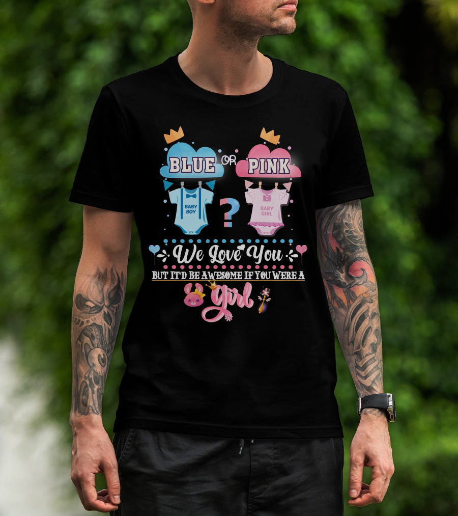 Pink Or Blue Baby Boy Girl Gender Reveal We Love You Be Awesome If You Were Girl T-Shirt