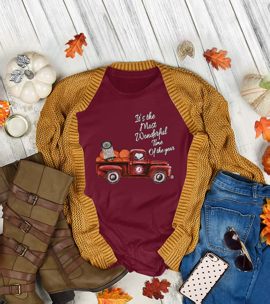 It's The Most Wonderful Time Of The Year Alabama Crimson Tide Basketball Snoopy RTJ Memorial Stadium Red Truck T-Shirt
