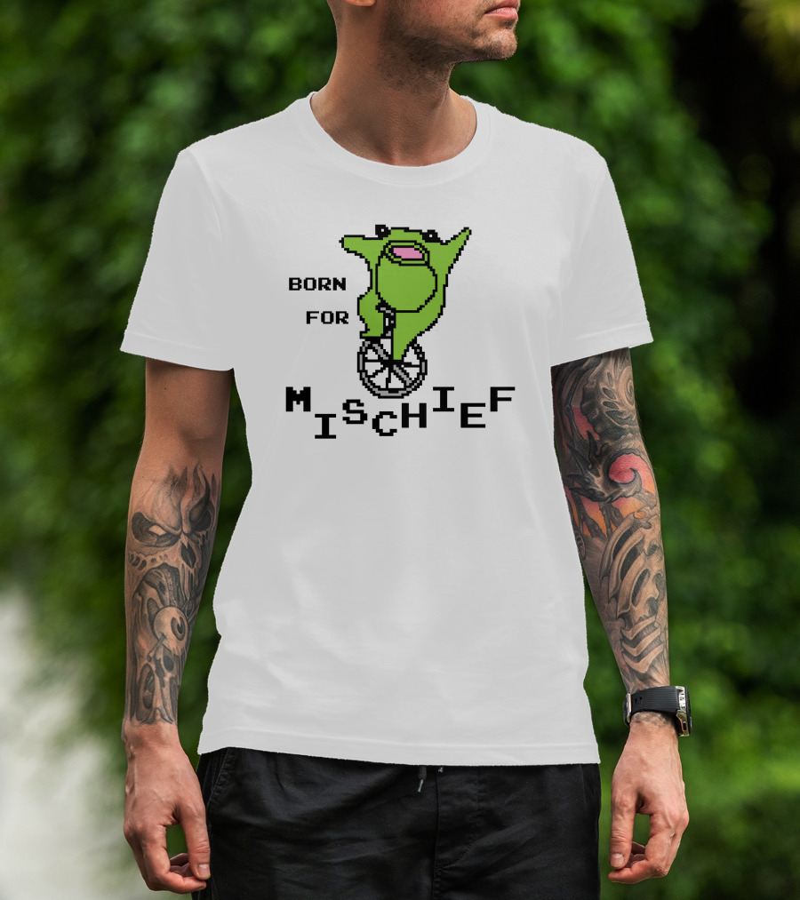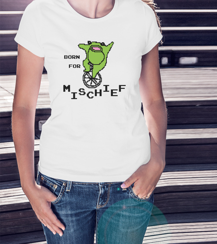 The Born For Mischief Frog on Unicycle T-shirt is designed for everyday wear and a consistent fit. Fabric is pre-shrunk ring-spun cotton with durable stitching. See the size chart below for exact measurements.