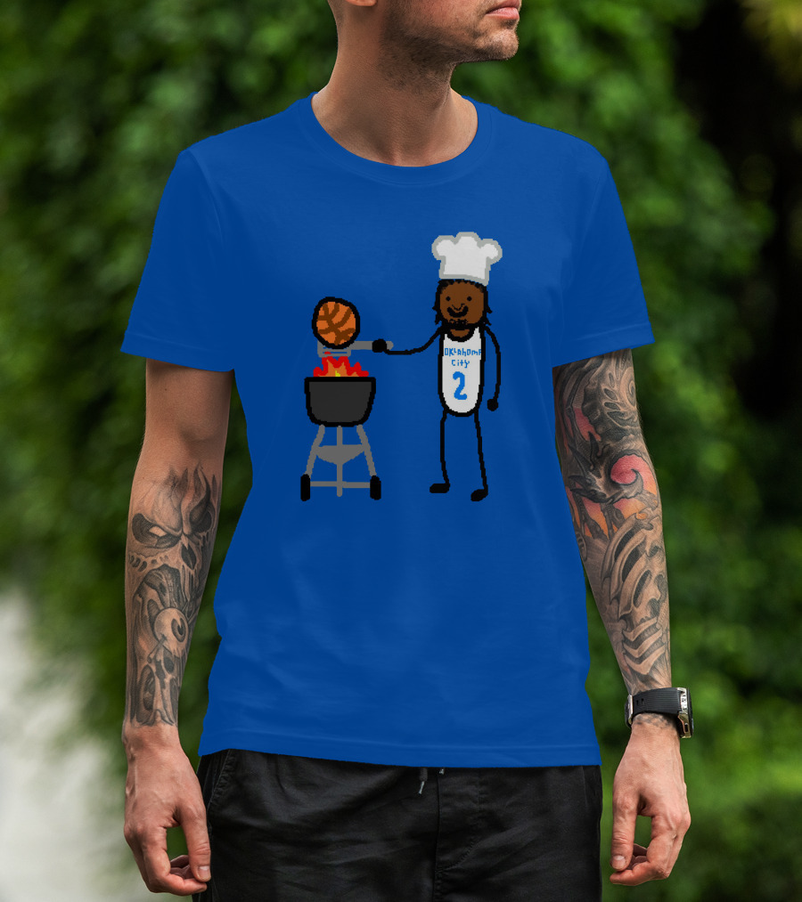 The Nba Paint Shai Grill-Geous Alexander Oklahoma City Chef Basketball T-shirt is designed for everyday wear and a consistent fit. Fabric is pre-shrunk ring-spun cotton with durable stitching. See the size chart below for exact measurements.