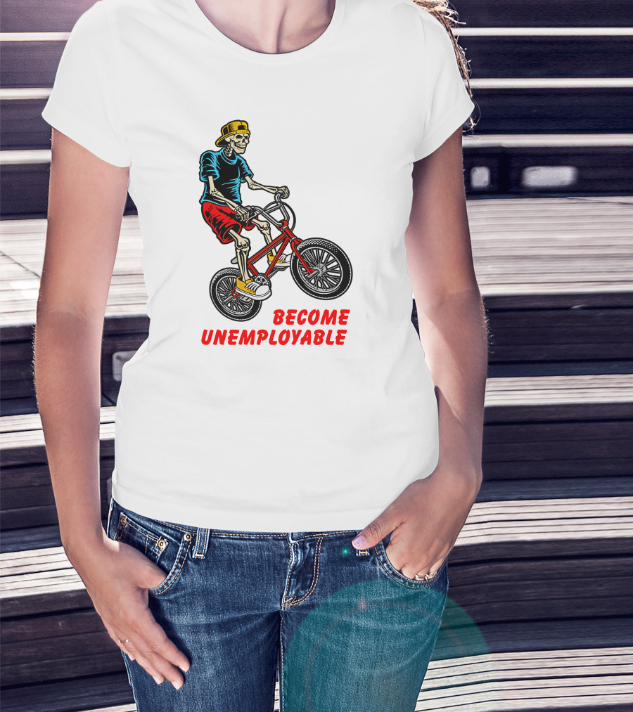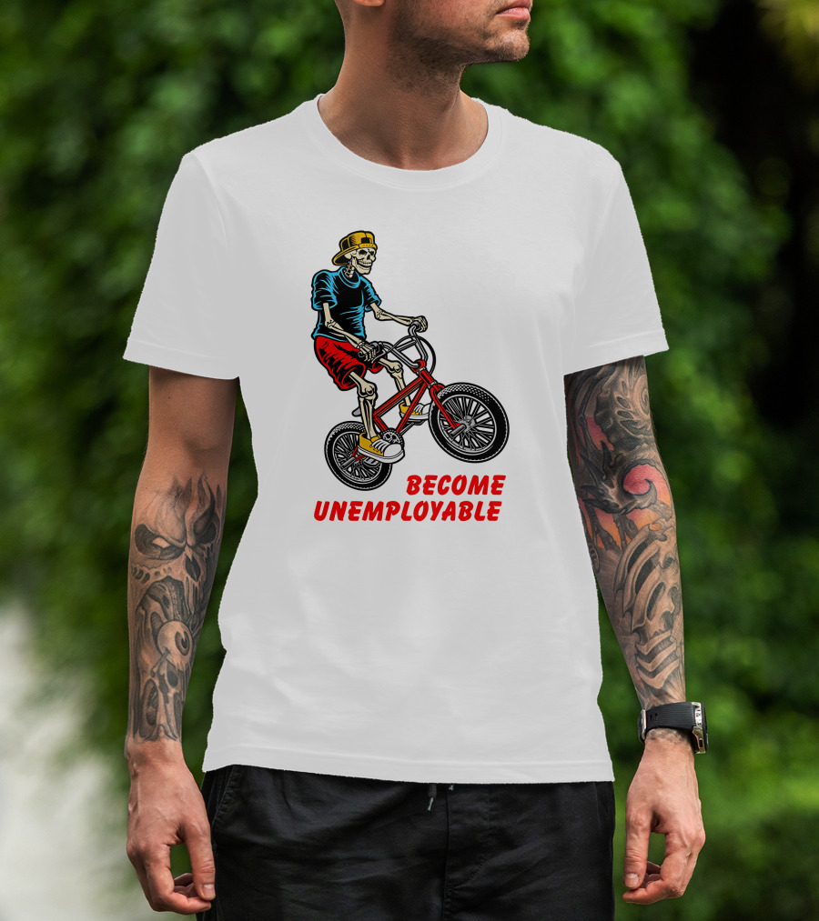 Shithead Steve Merch Skeleton BMX Rider Become Unemployable T-Shirt