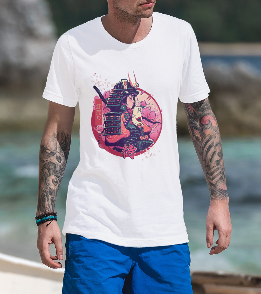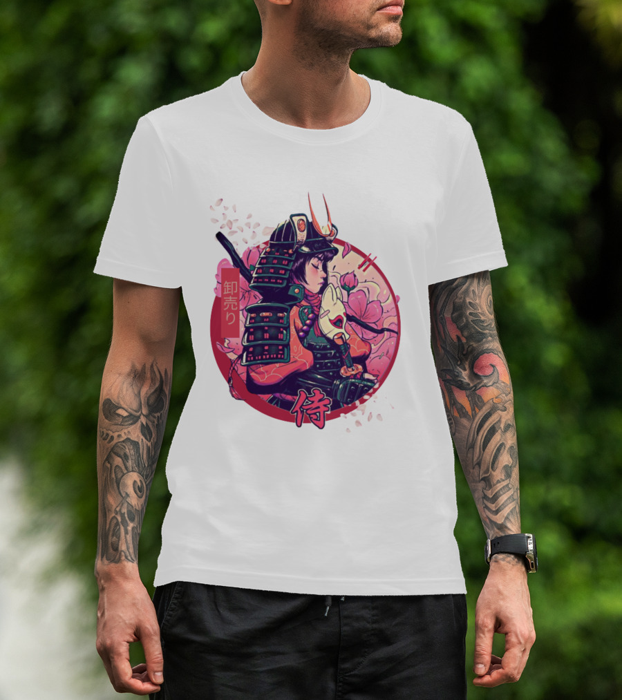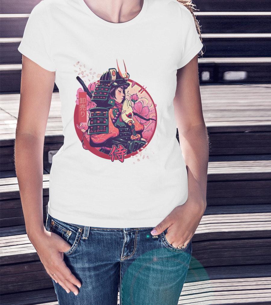 Samurai Girl Cherry Blossom Warrior Japan Kanji T-Shirt