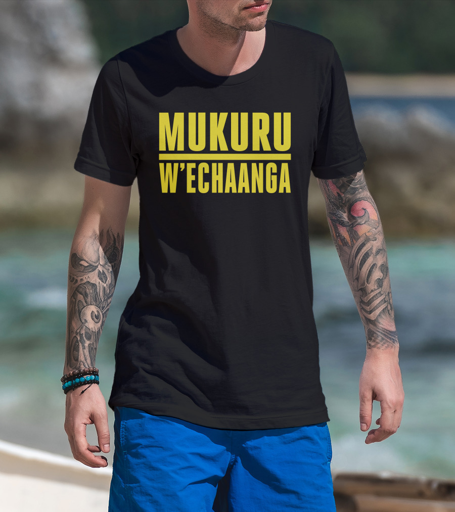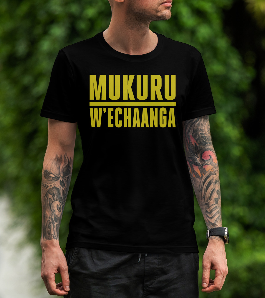 The Mukuru W'echaanga T-shirt is designed for everyday wear and a consistent fit. Fabric is pre-shrunk ring-spun cotton with durable stitching. See the size chart below for exact measurements.