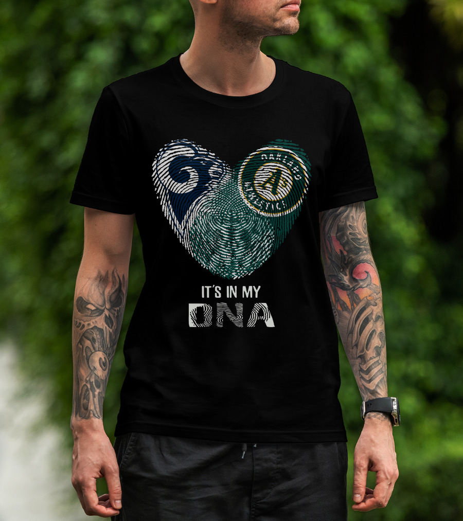 Rams Oakland Athletics It's In My DNA Fingerprint Heart T-Shirt