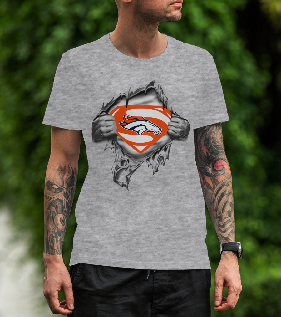 Broncos Super Man Logo Gray Torn Effect T-Shirt