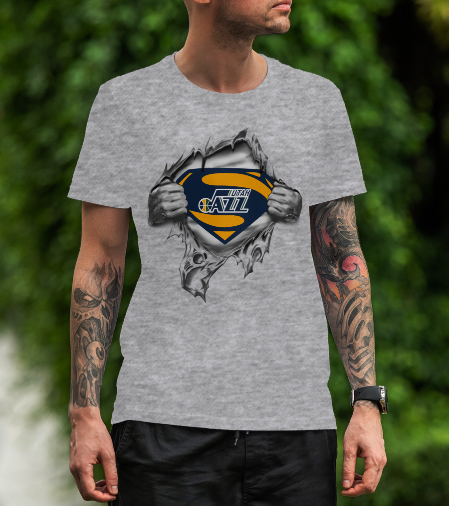 Utah Jazz Superman Logo Rip T-Shirt