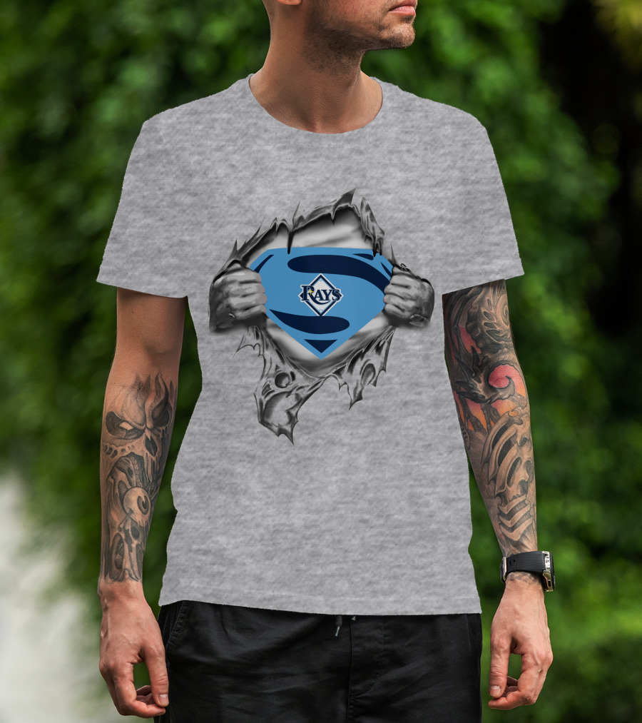 Rays Superman Symbol Logo Torn Chest T-Shirt