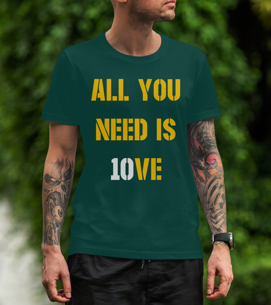 The ALL YOU NEED IS 10VE T-shirt is designed for everyday wear and a consistent fit. Fabric is pre-shrunk ring-spun cotton with durable stitching. See the size chart below for exact measurements.
