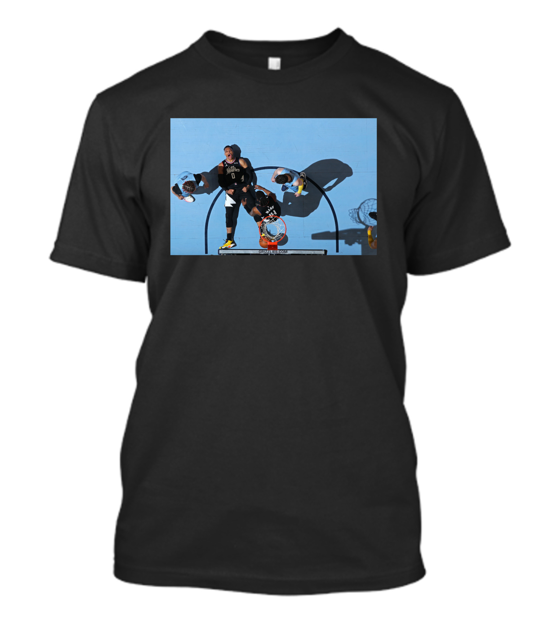 The Russell Westbrook Aggressive Play Against Memphis Grizzlies Basketball T-shirt is designed for everyday wear and a consistent fit. Fabric is pre-shrunk ring-spun cotton with durable stitching. See the size chart below for exact measurements.