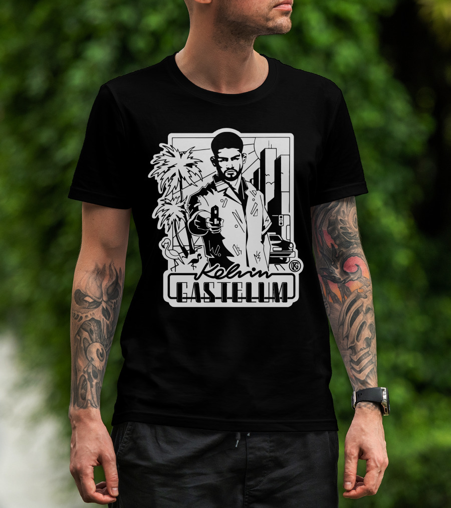 The Kelvin Gastelum Palm Trees Cityscape T-shirt is designed for everyday wear and a consistent fit. Fabric is pre-shrunk ring-spun cotton with durable stitching. See the size chart below for exact measurements.