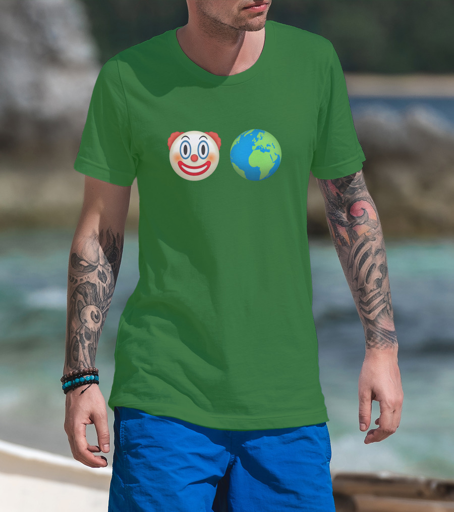 The Clown Face Globe Emoji Clown World T-shirt is designed for everyday wear and a consistent fit. Fabric is pre-shrunk ring-spun cotton with durable stitching. See the size chart below for exact measurements.