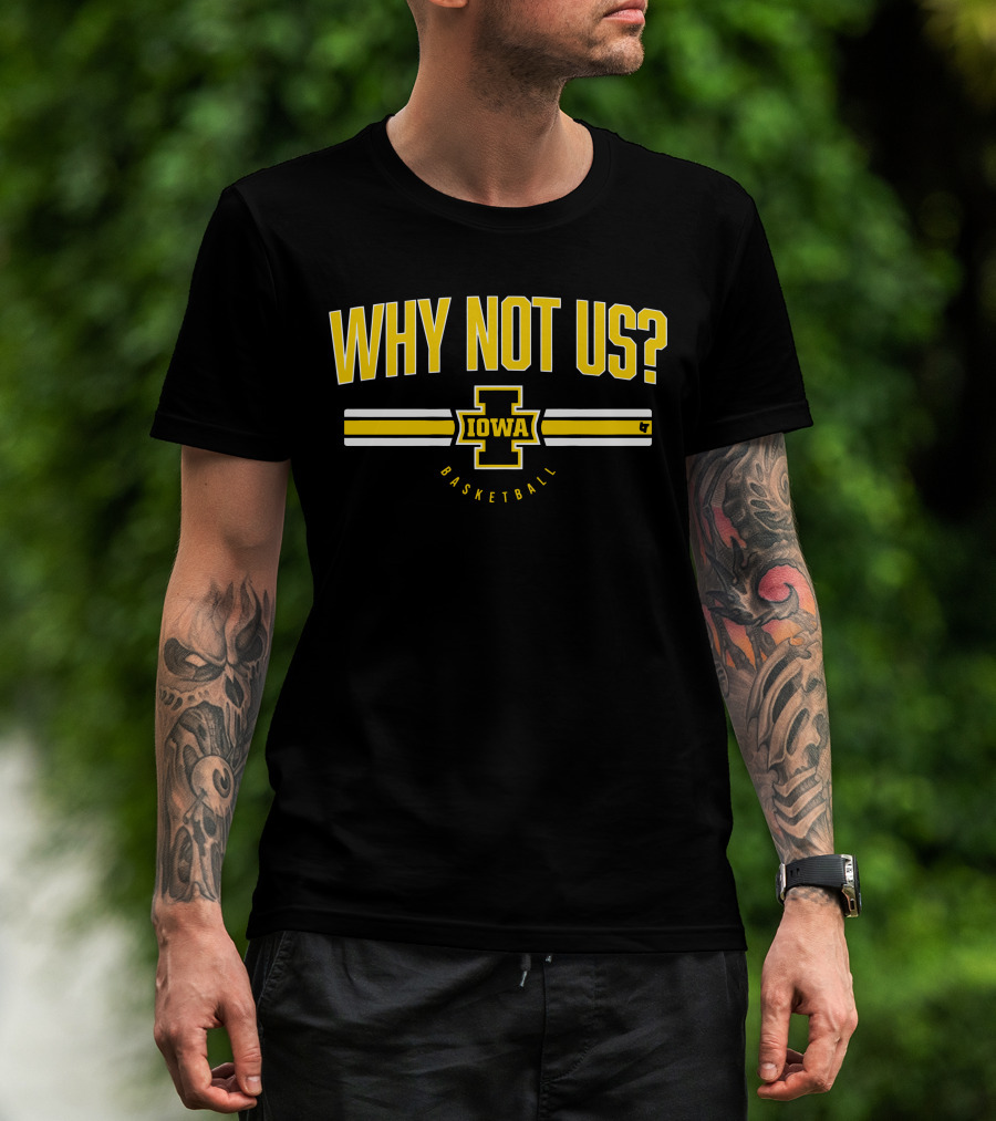 The Iowa Basketball Why Not Us? T-shirt is designed for everyday wear and a consistent fit. Fabric is pre-shrunk ring-spun cotton with durable stitching. See the size chart below for exact measurements.