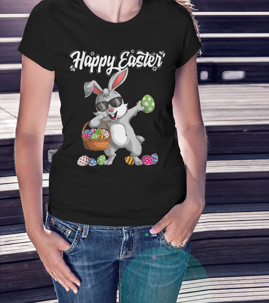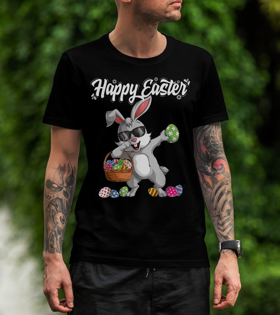 Happy Easter Dabbing Rabbit With Basket And Eggs T-Shirt