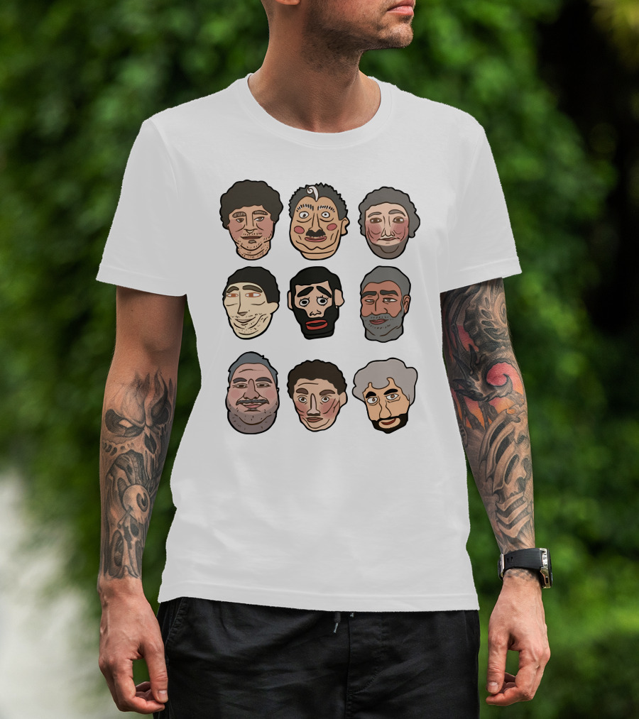 The H3 Podcast Faces Characters T-shirt is designed for everyday wear and a consistent fit. Fabric is pre-shrunk ring-spun cotton with durable stitching. See the size chart below for exact measurements.