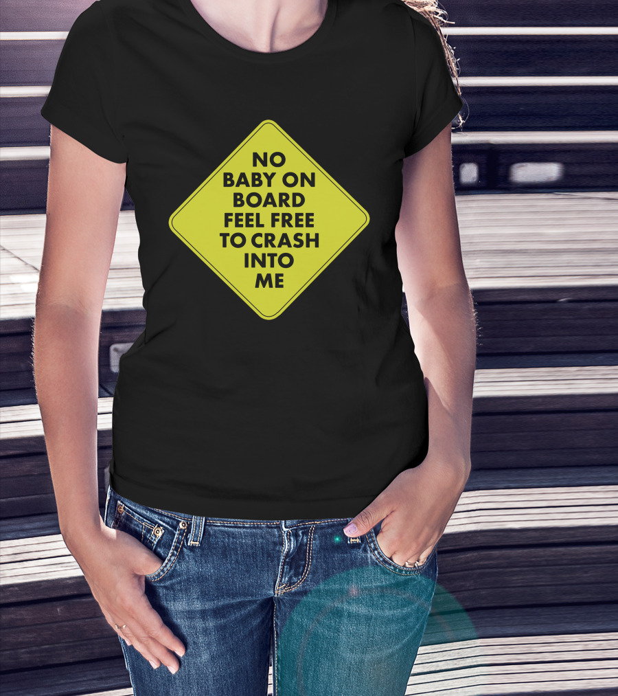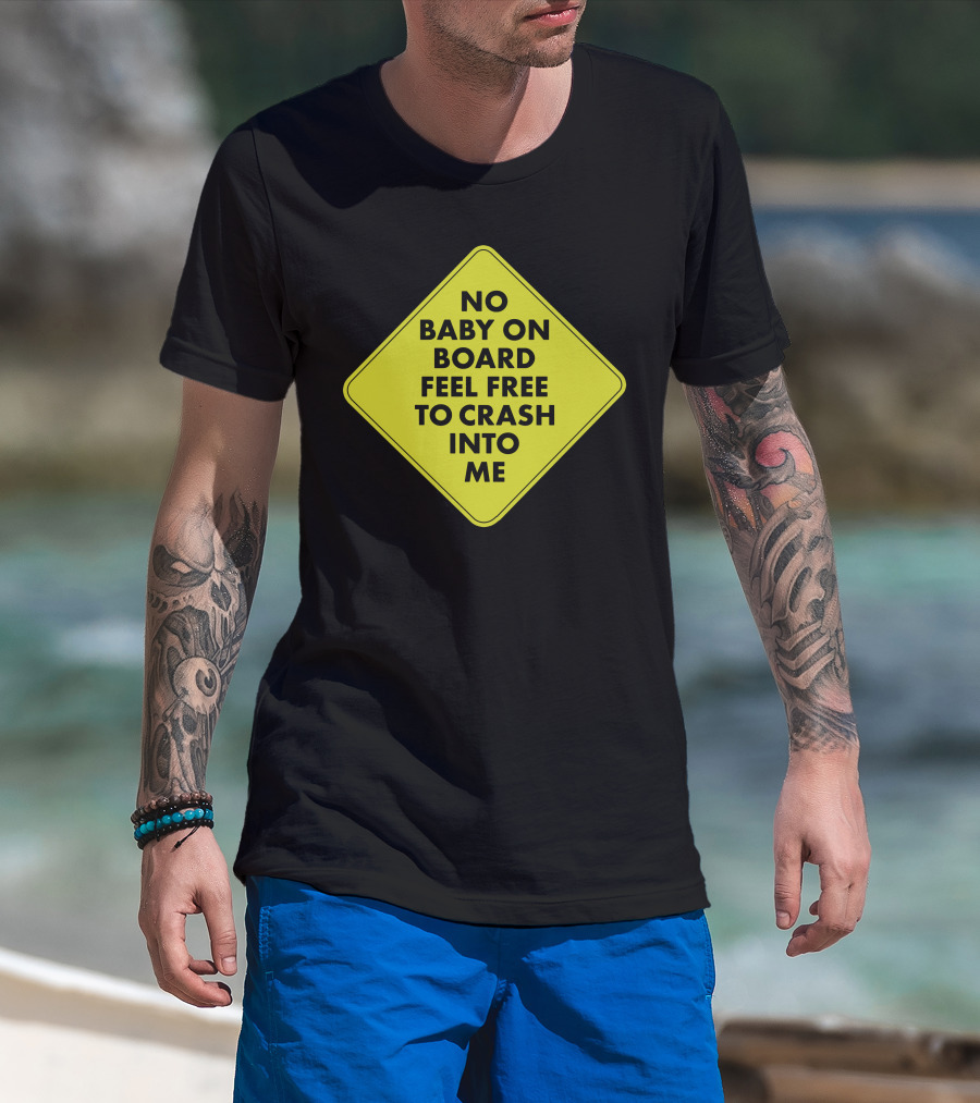 No Baby On Board Feel Free To Crash Into Me Yellow Sign T-Shirt