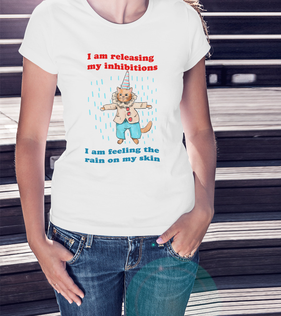 I Am Releasing My Inhibitions I Am Feeling The Rain On My Skin Cat In Clown Costume T-Shirt