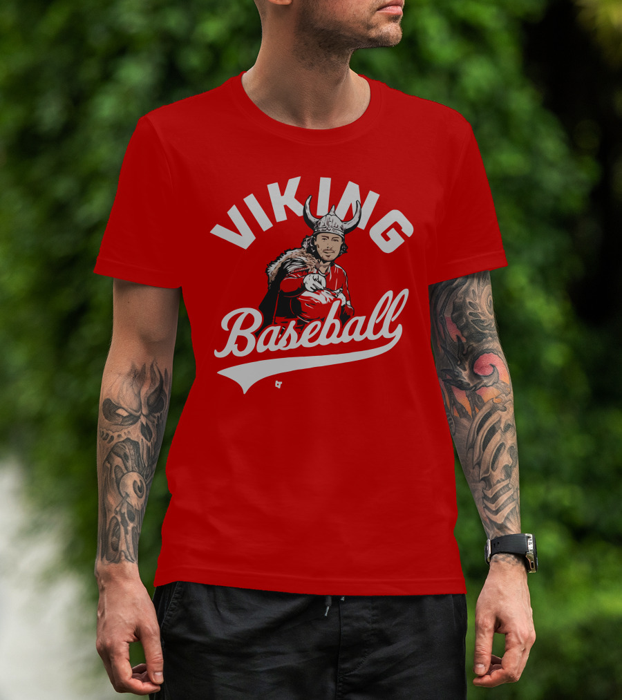 The Jonathan India Viking Baseball Player T-shirt is designed for everyday wear and a consistent fit. Fabric is pre-shrunk ring-spun cotton with durable stitching. See the size chart below for exact measurements.