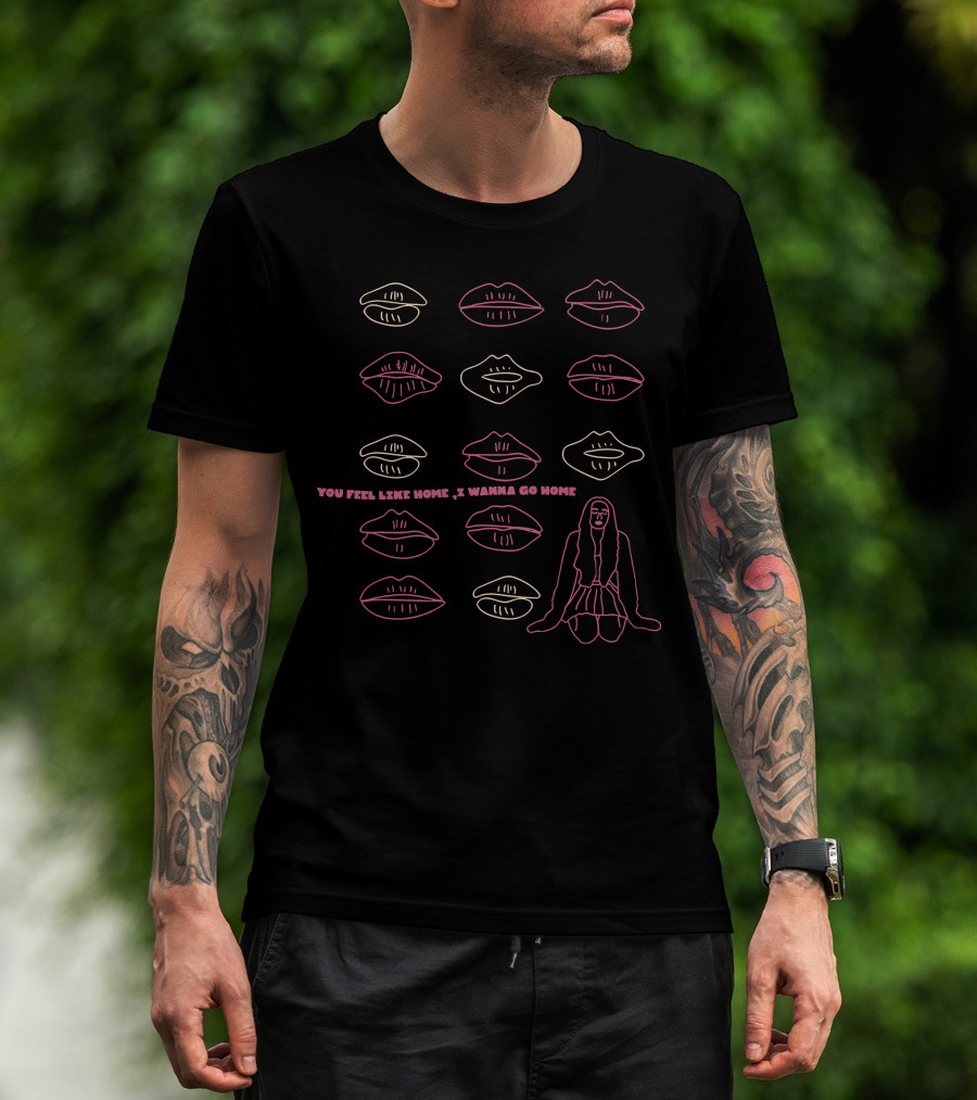 You Feel Like Home I Wanna Go Home Lips And Sitting Figure T-Shirt