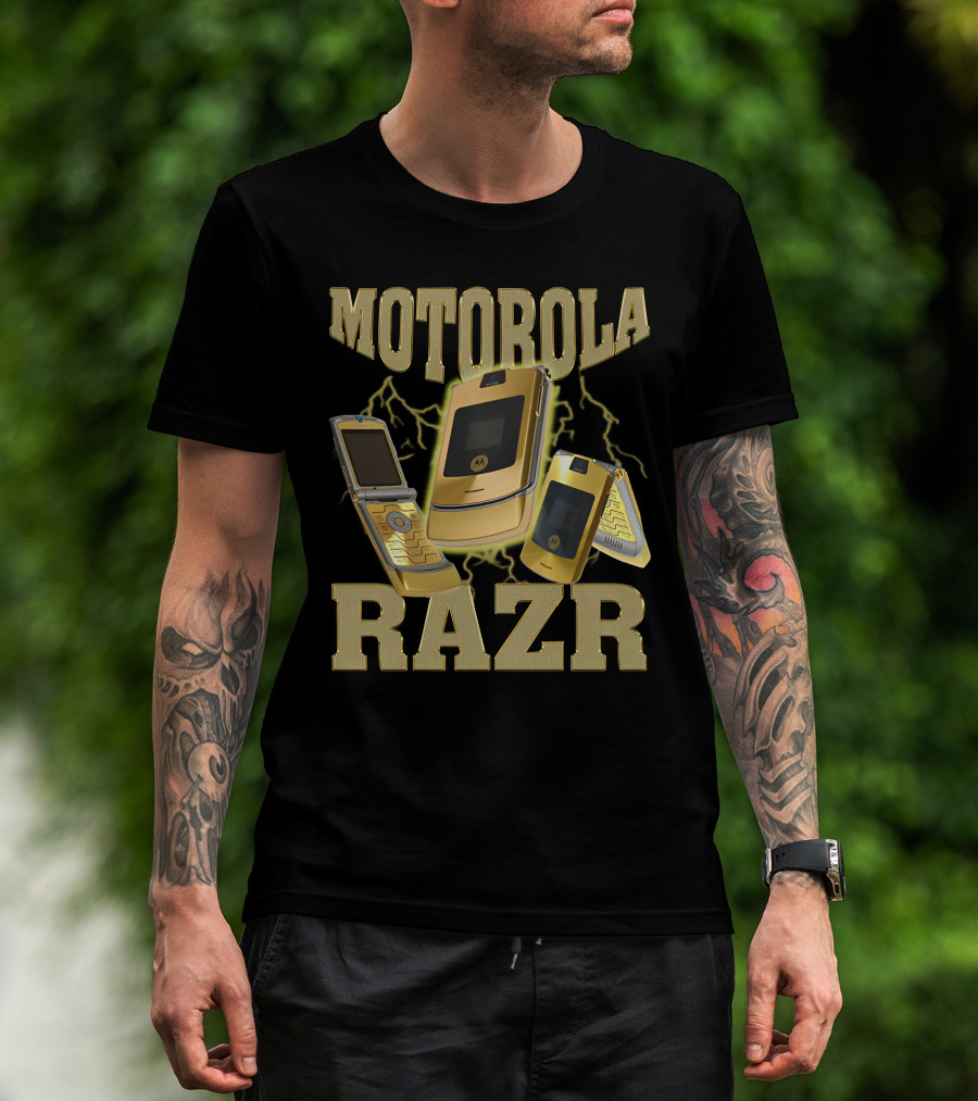 MOTOROLA RAZR Gold Flip Phone Lightning T-Shirt