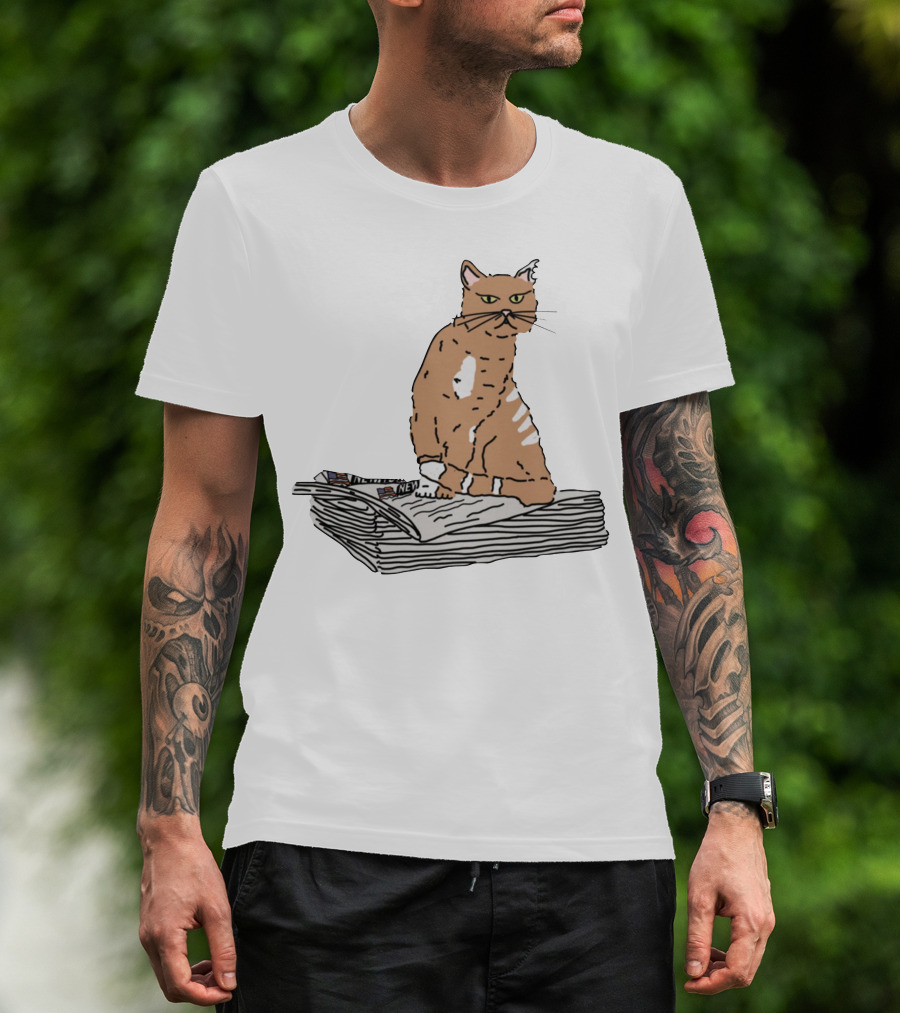 The New York Post Cat on Newspaper Stack T-shirt is designed for everyday wear and a consistent fit. Fabric is pre-shrunk ring-spun cotton with durable stitching. See the size chart below for exact measurements.