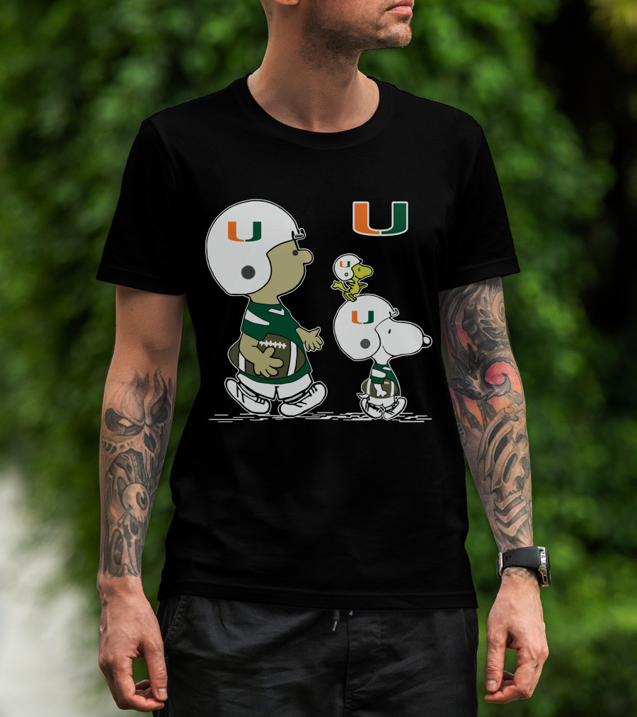 Miami Hurricanes Peanuts Snoopy Woodstock Helmet Football T-Shirt