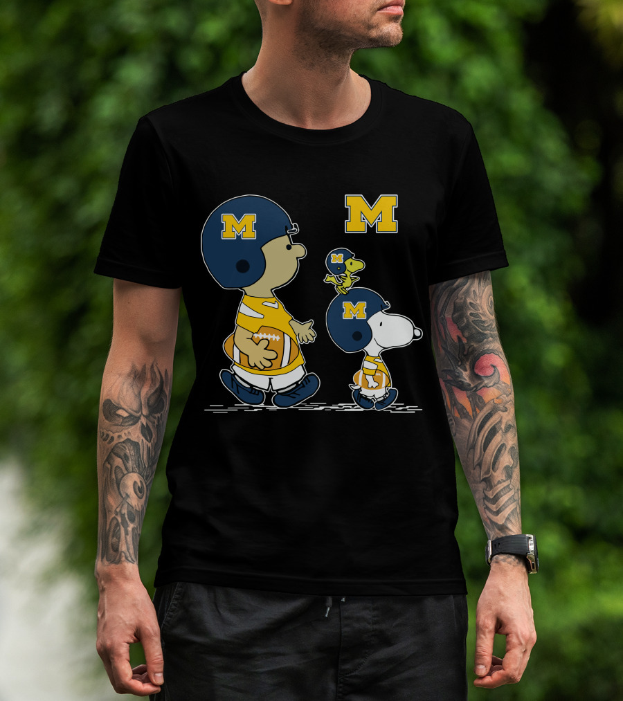 Michigan Wolverines Snoopy And Woodstock Football Helmets T-Shirt