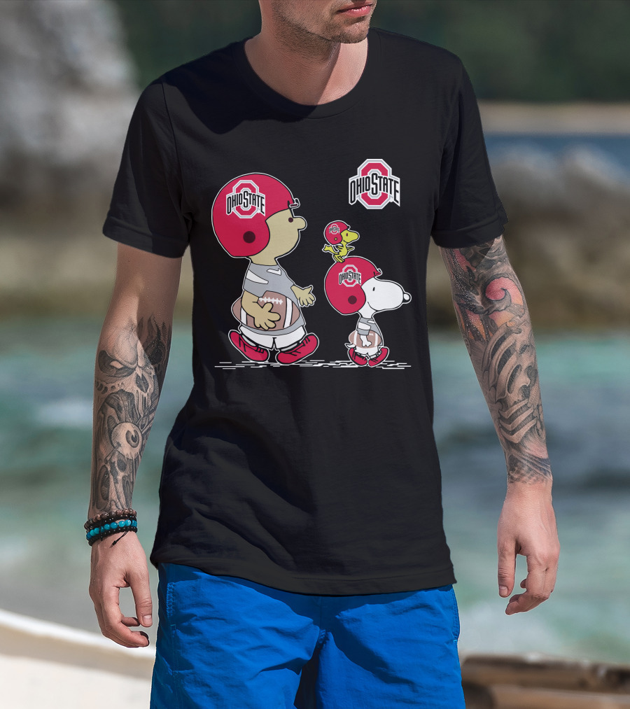 Ohio State Peanuts Snoopy Woodstock Football Team Helmets T-Shirt