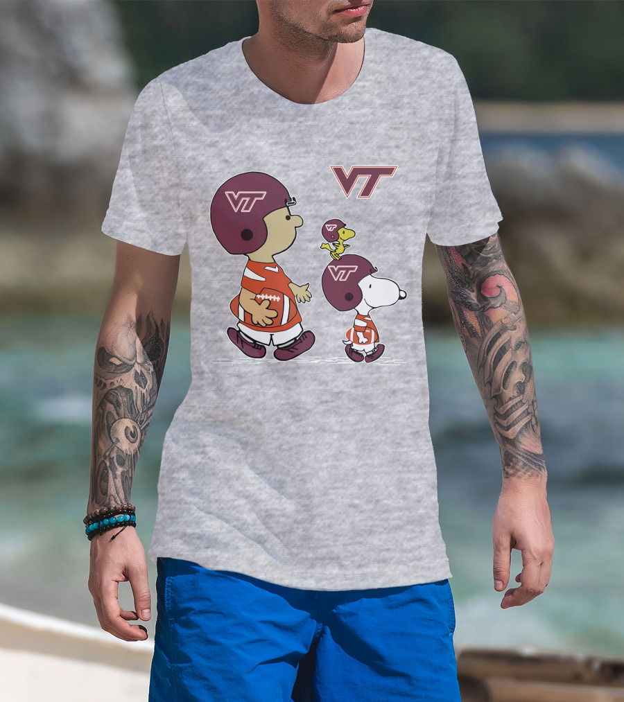 Virginia Tech Hokies VT Football Snoopy And Woodstock Peanuts Characters T-Shirt