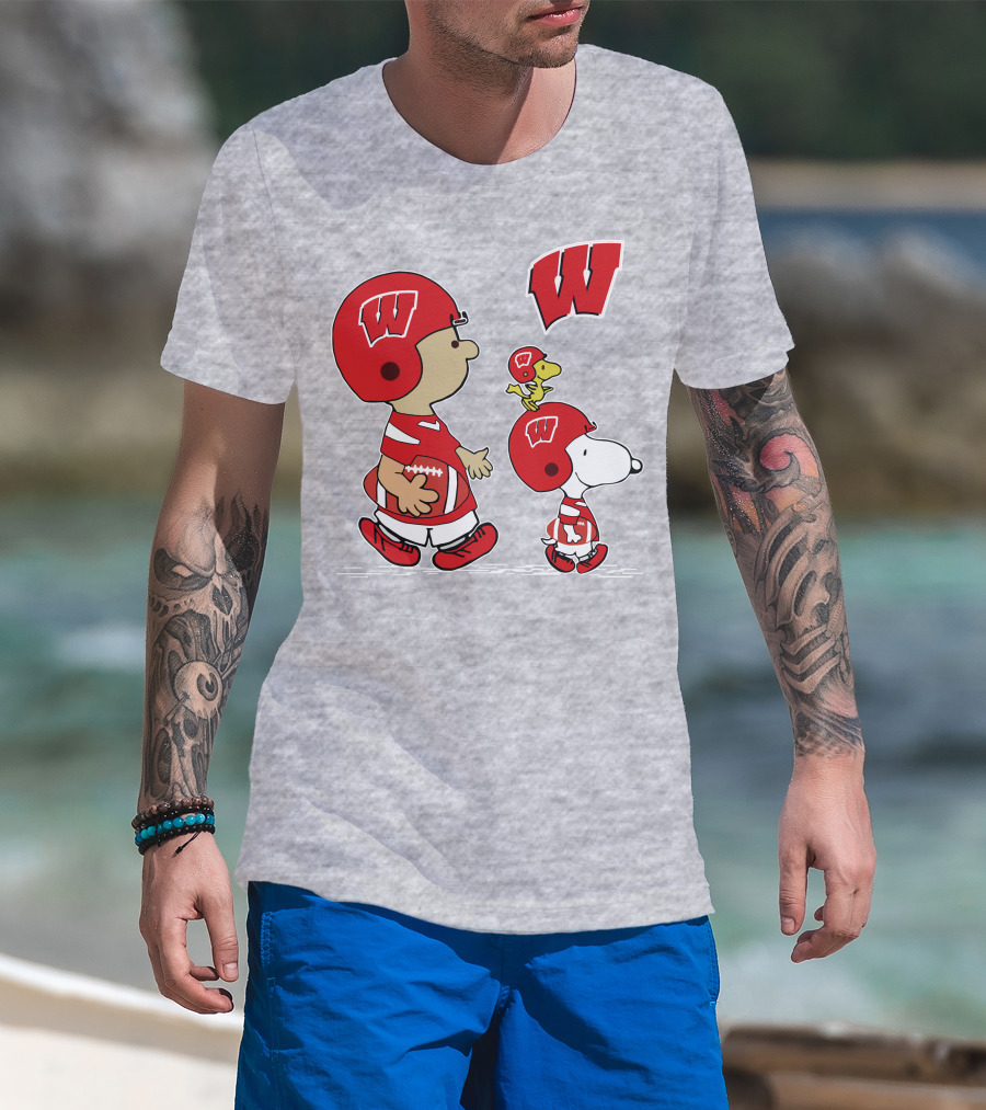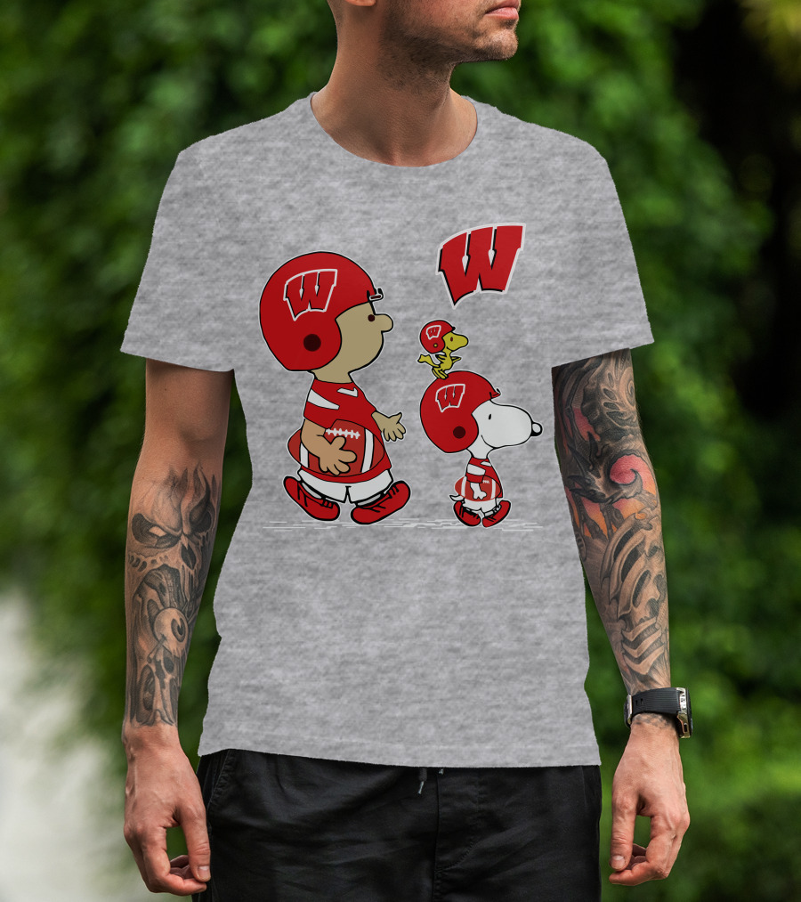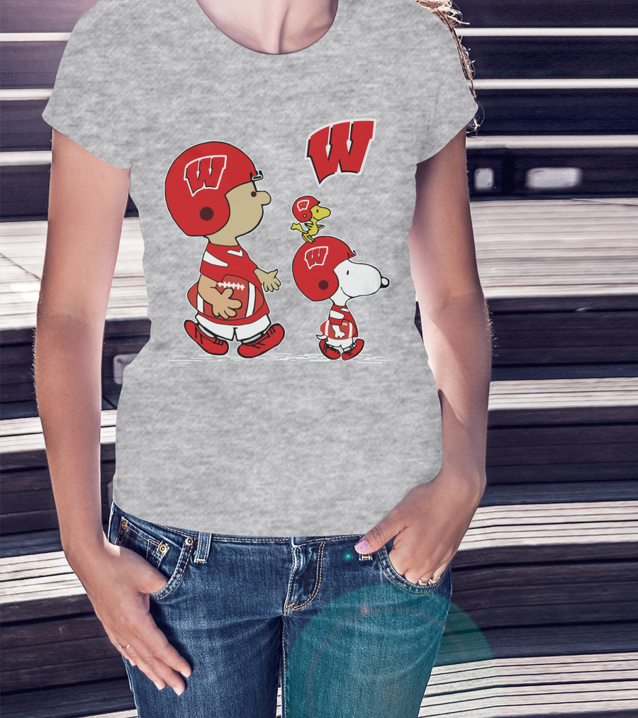 Wisconsin Badgers Snoopy Football Helmet Peanuts Characters Walking Together T-Shirt