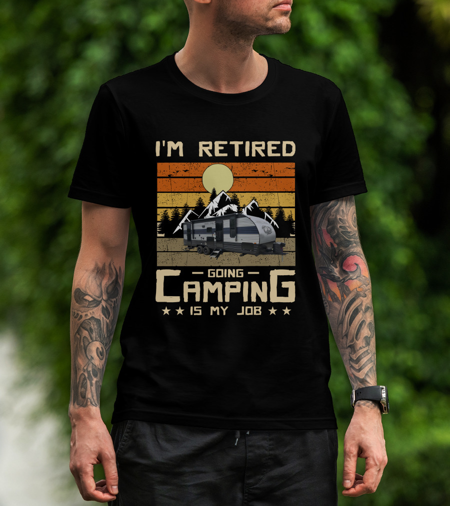 I'm Retired Going Camping Is My Job 23DBH Grey Wolf T-Shirt