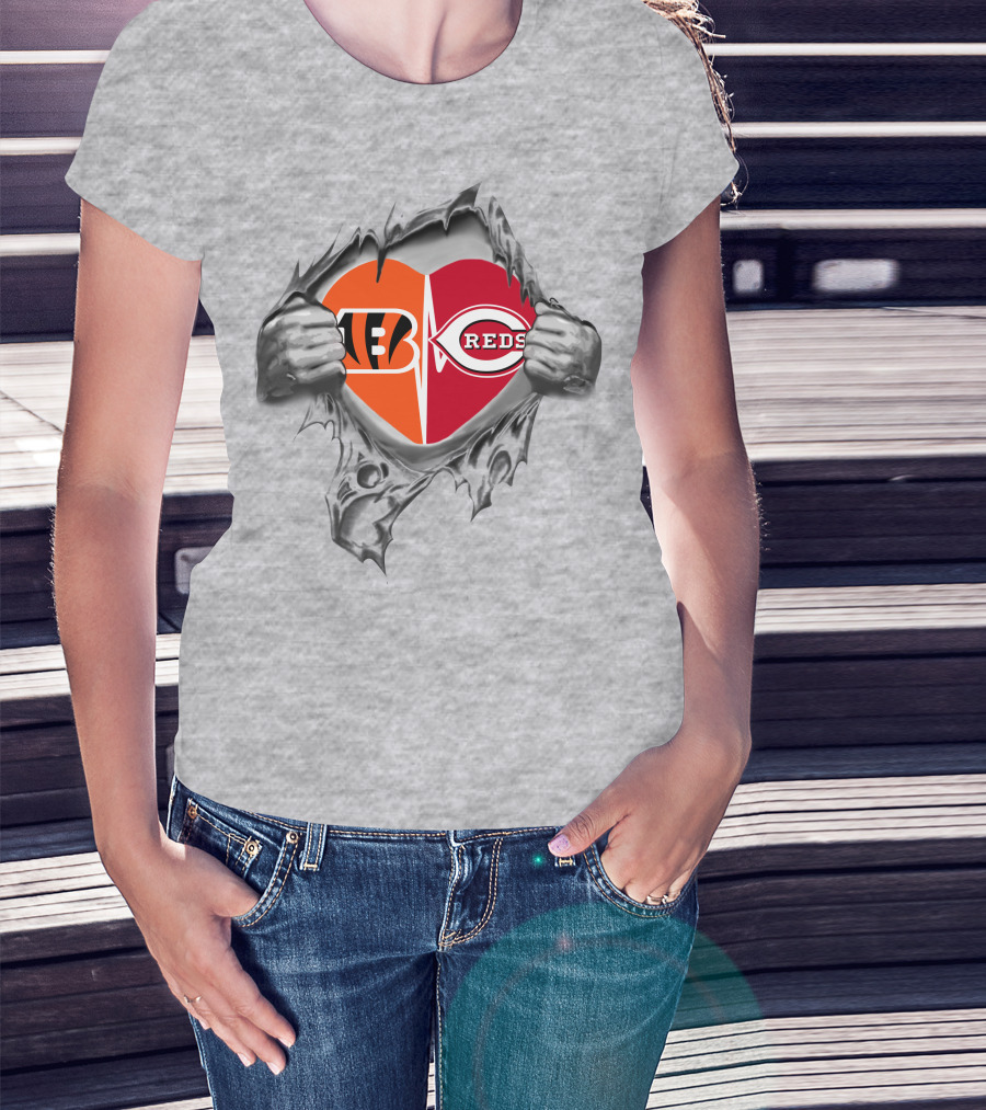 Bengals Reds Heart Cincinnati Sports Fan Passion T-Shirt