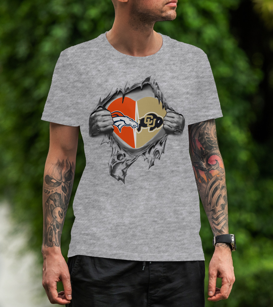 Broncos Buffaloes Heart Logos In Torn T-Shirt