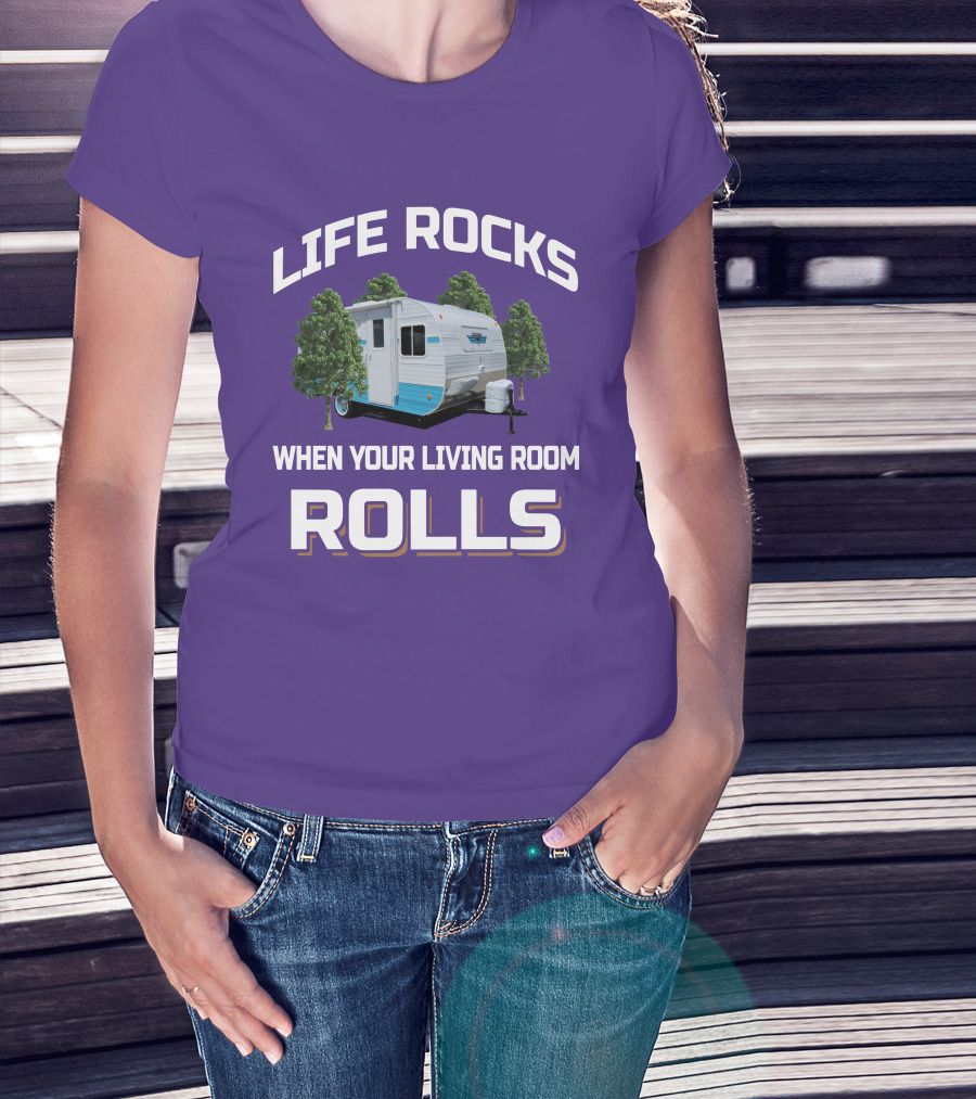Life Rocks When Your Living Room Rolls Riverside Camper Fun T-Shirt