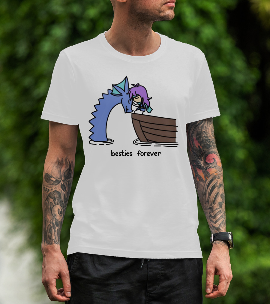 The Kimchichickenbeer Faris and Syldra Besties Forever Best Friends with Dragon and Boat Scene T-shirt is designed for everyday wear and a consistent fit. Fabric is pre-shrunk ring-spun cotton with durable stitching. See the size chart below for exact measurements.