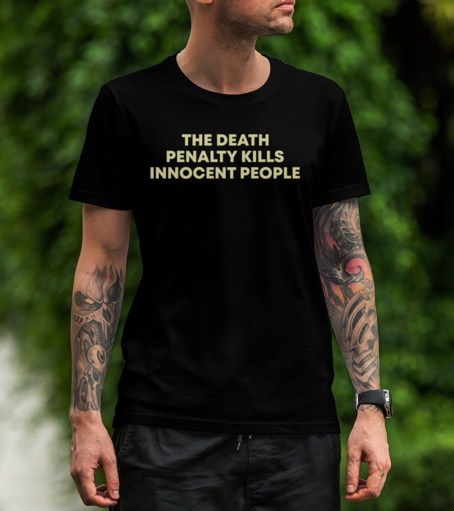 The The Death Penalty Kills Innocent People T-shirt is designed for everyday wear and a consistent fit. Fabric is pre-shrunk ring-spun cotton with durable stitching. See the size chart below for exact measurements.