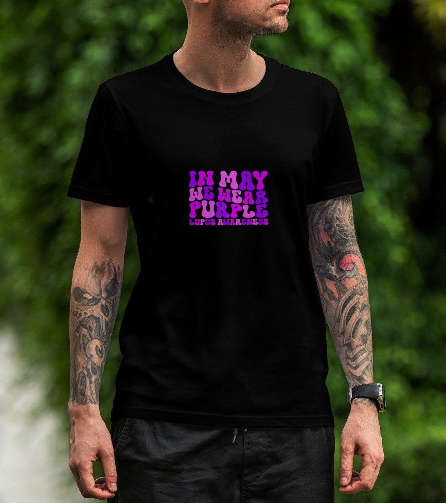 The In May We Wear Purple Lupus Awareness T-shirt is designed for everyday wear and a consistent fit. Fabric is pre-shrunk ring-spun cotton with durable stitching. See the size chart below for exact measurements.