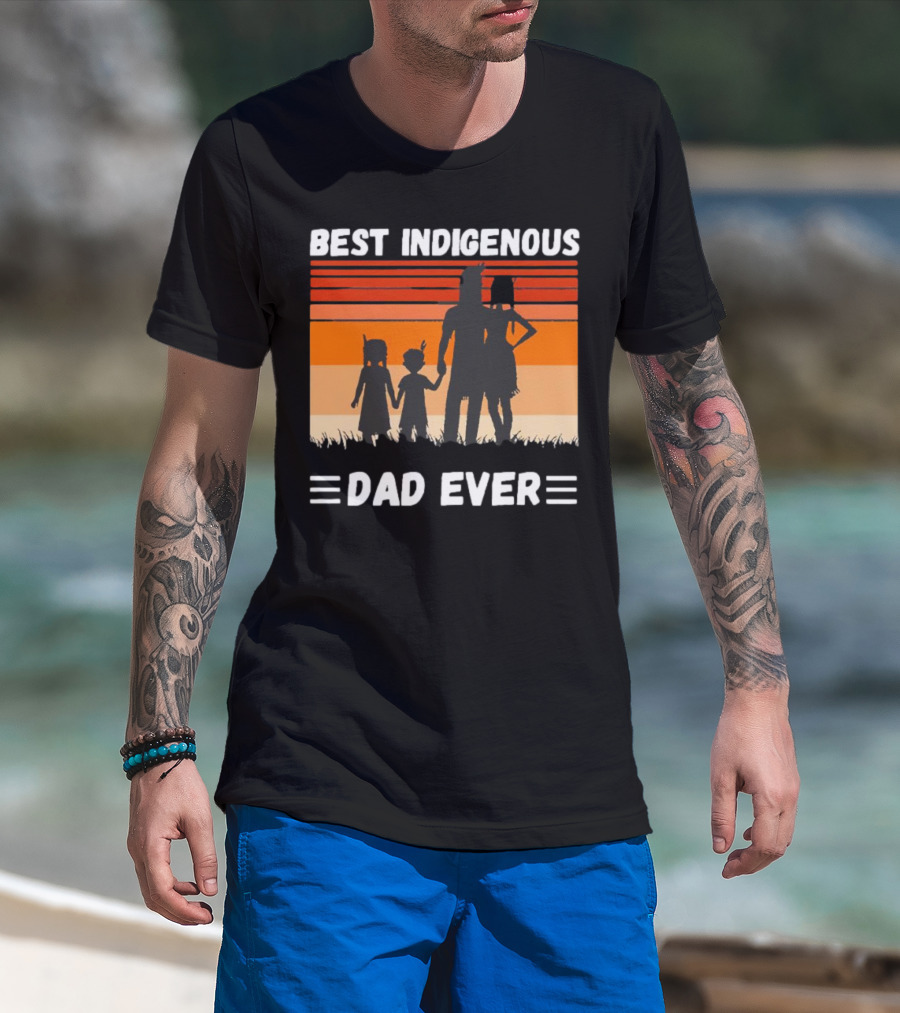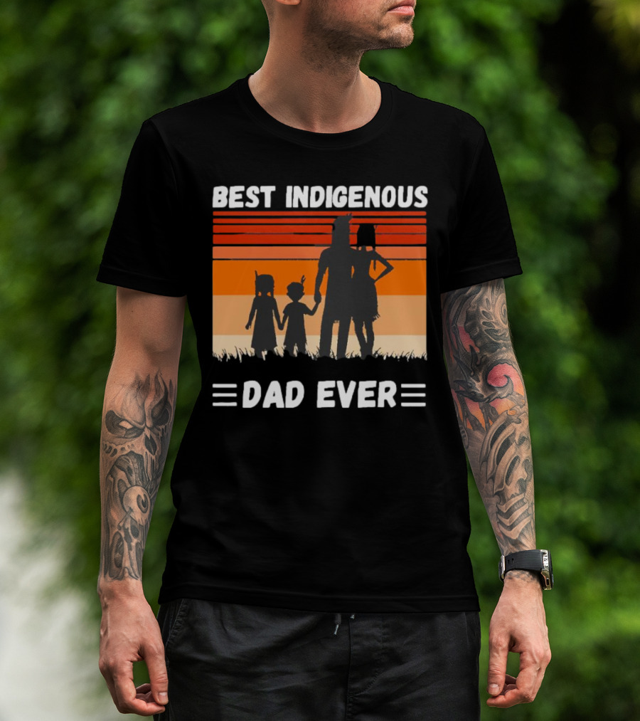 BEST INDIGENOUS DAD EVER Sunset Silhouette Family T-Shirt