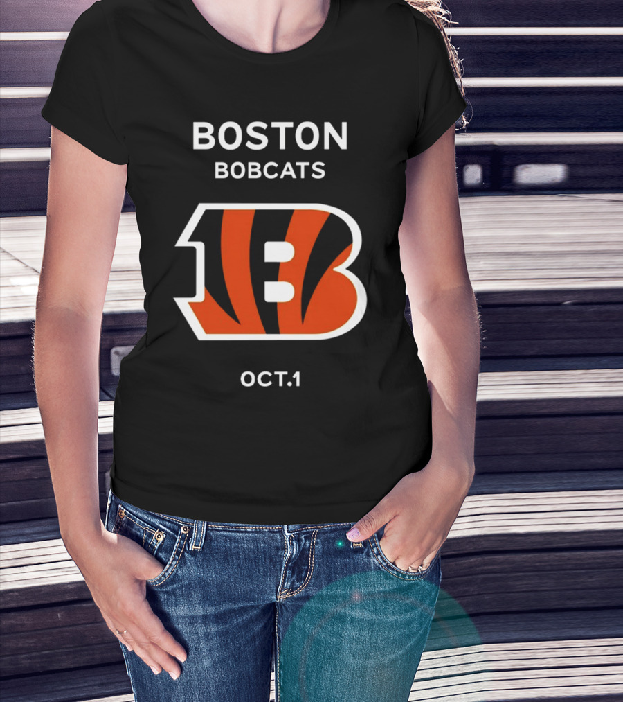 The Boston Bobcats B Logo Oct 1 Tiger Stripes T-shirt is designed for everyday wear and a consistent fit. Fabric is pre-shrunk ring-spun cotton with durable stitching. See the size chart below for exact measurements.