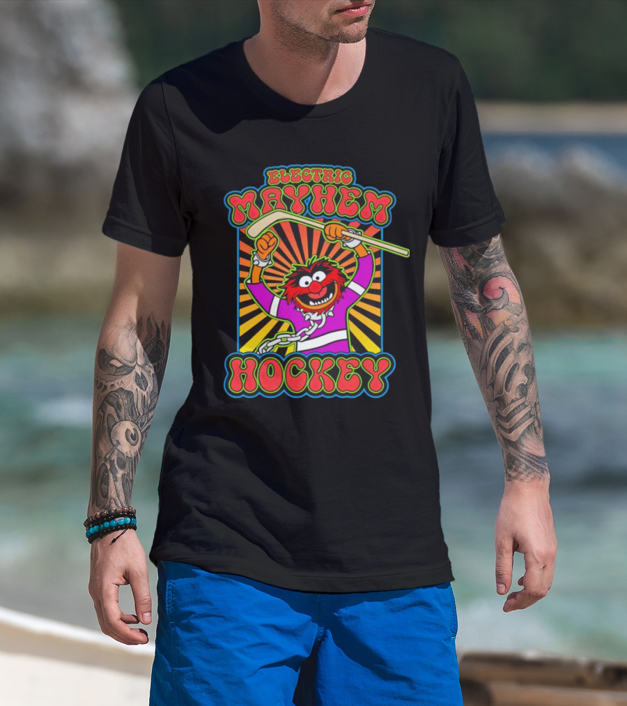 Electric Mayhem Hockey Muppets Animal With Hockey Stick T-Shirt