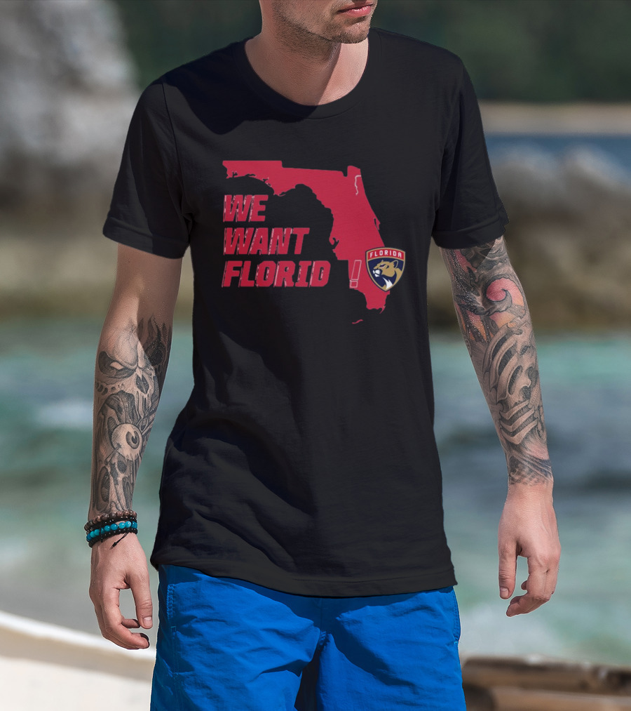 The We Want Florida Panthers Map T-shirt is designed for everyday wear and a consistent fit. Fabric is pre-shrunk ring-spun cotton with durable stitching. See the size chart below for exact measurements.