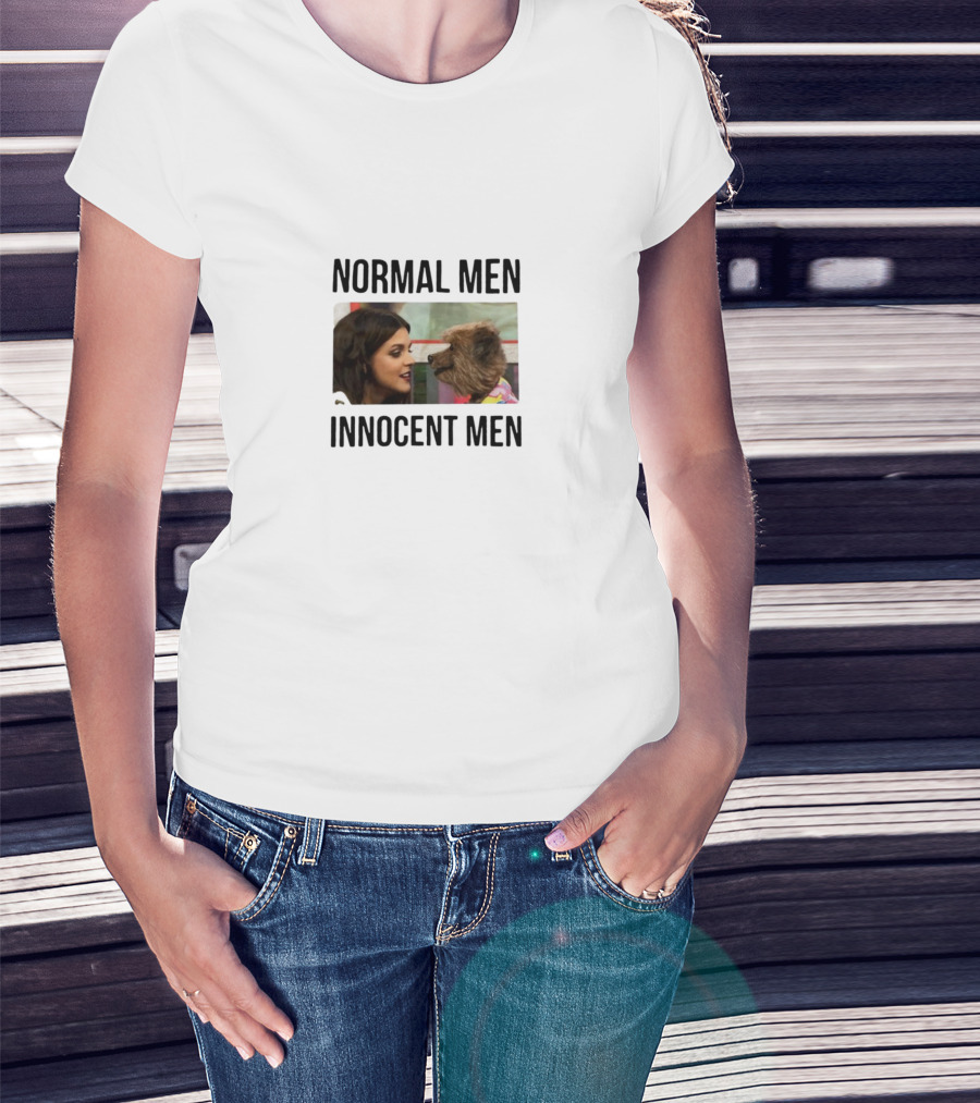 The Normal Men Innocent Men Look Conversation with Puppet Dog T-shirt is designed for everyday wear and a consistent fit. Fabric is pre-shrunk ring-spun cotton with durable stitching. See the size chart below for exact measurements.