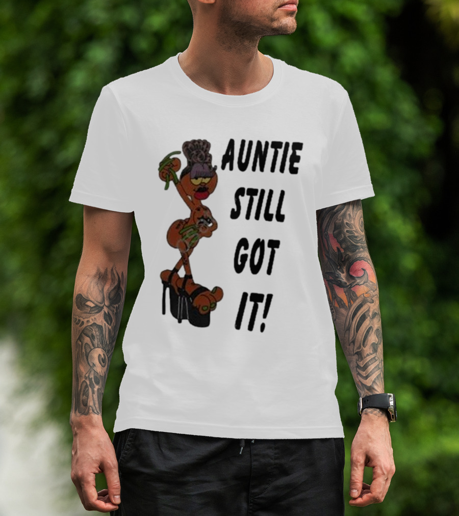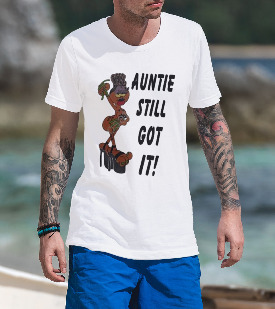 The Auntie Still Got It High Heel Diva with Curlers and Coffee T-shirt is designed for everyday wear and a consistent fit. Fabric is pre-shrunk ring-spun cotton with durable stitching. See the size chart below for exact measurements.