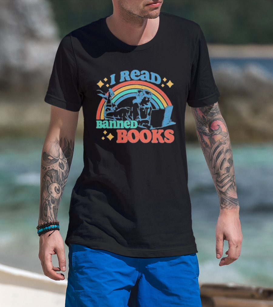 The I Read Banned Books Retro Rainbow T-shirt is designed for everyday wear and a consistent fit. Fabric is pre-shrunk ring-spun cotton with durable stitching. See the size chart below for exact measurements.