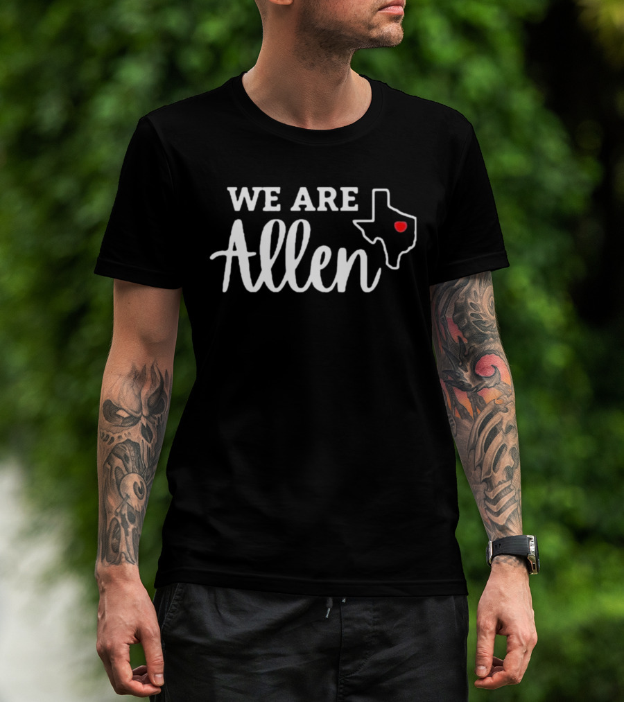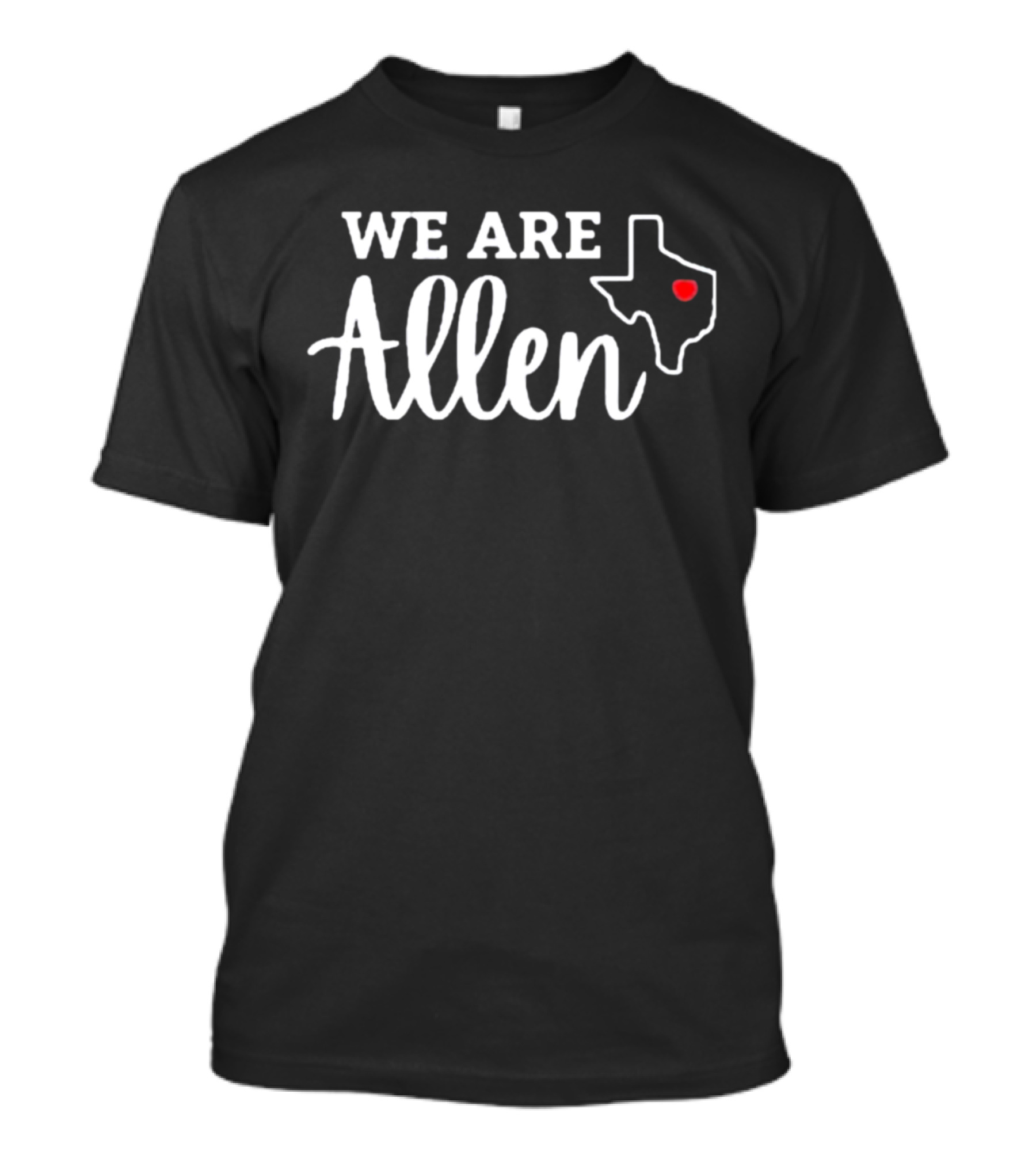 The We Are Allen Texas State Red Heart T-shirt is designed for everyday wear and a consistent fit. Fabric is pre-shrunk ring-spun cotton with durable stitching. See the size chart below for exact measurements.