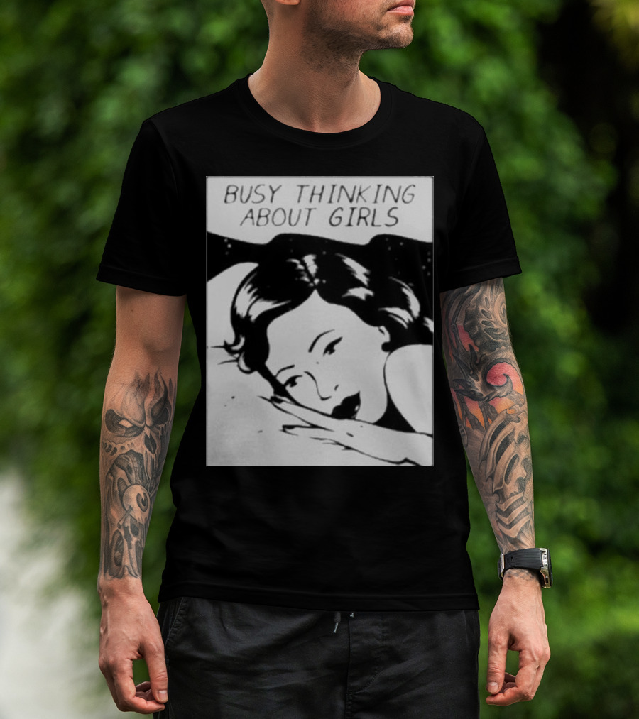 The Busy Thinking About Girls Comic Pop T-shirt is designed for everyday wear and a consistent fit. Fabric is pre-shrunk ring-spun cotton with durable stitching. See the size chart below for exact measurements.