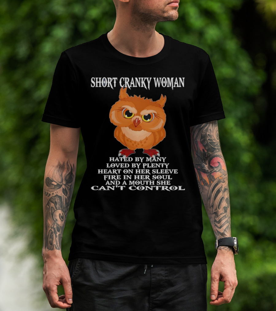 Short Cranky Woman Owl Hated By Many Loved By Plenty Heart On Her Sleeve Fire In Her Soul Can't Control T-Shirt