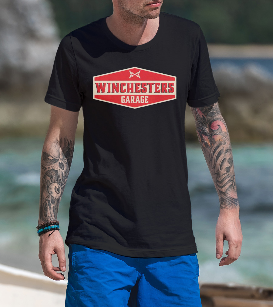 Winchester's Garage Red Hexagonal Shield With Crossed Wrenches T-Shirt