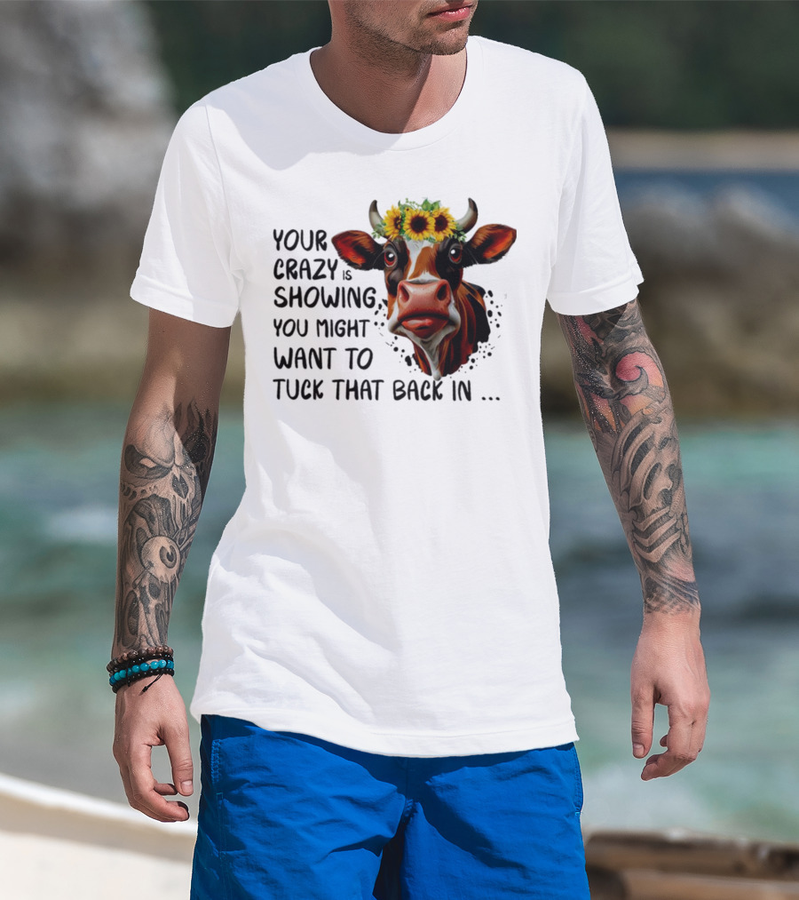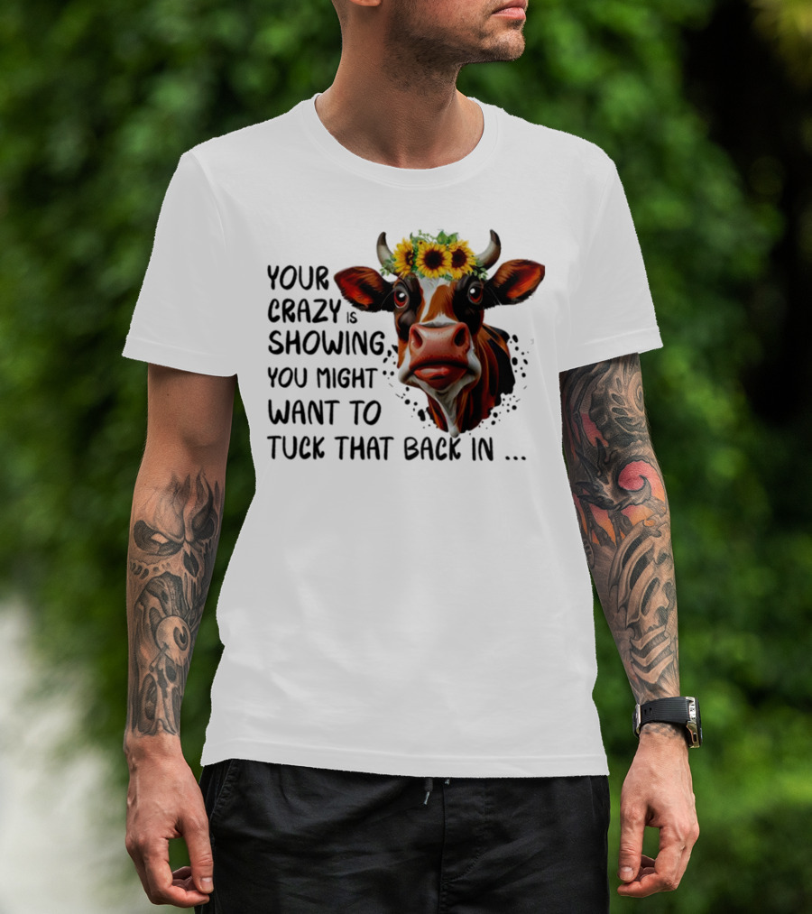 Cow Sunflower Your Crazy Is Showing Tuck That Back In T-Shirt